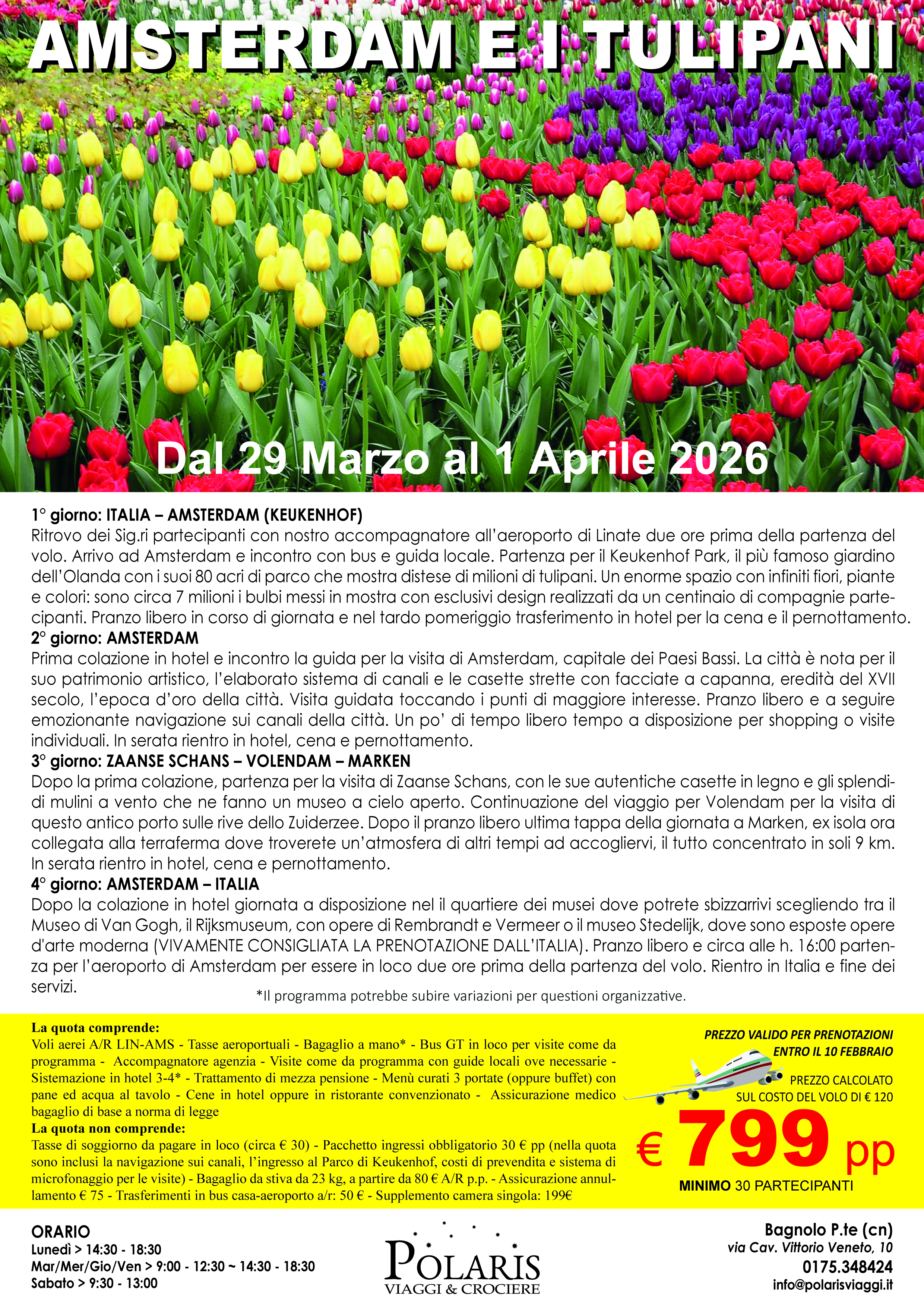 1° giorno: ITALIA – AMSTERDAM (KEUKENHOF)