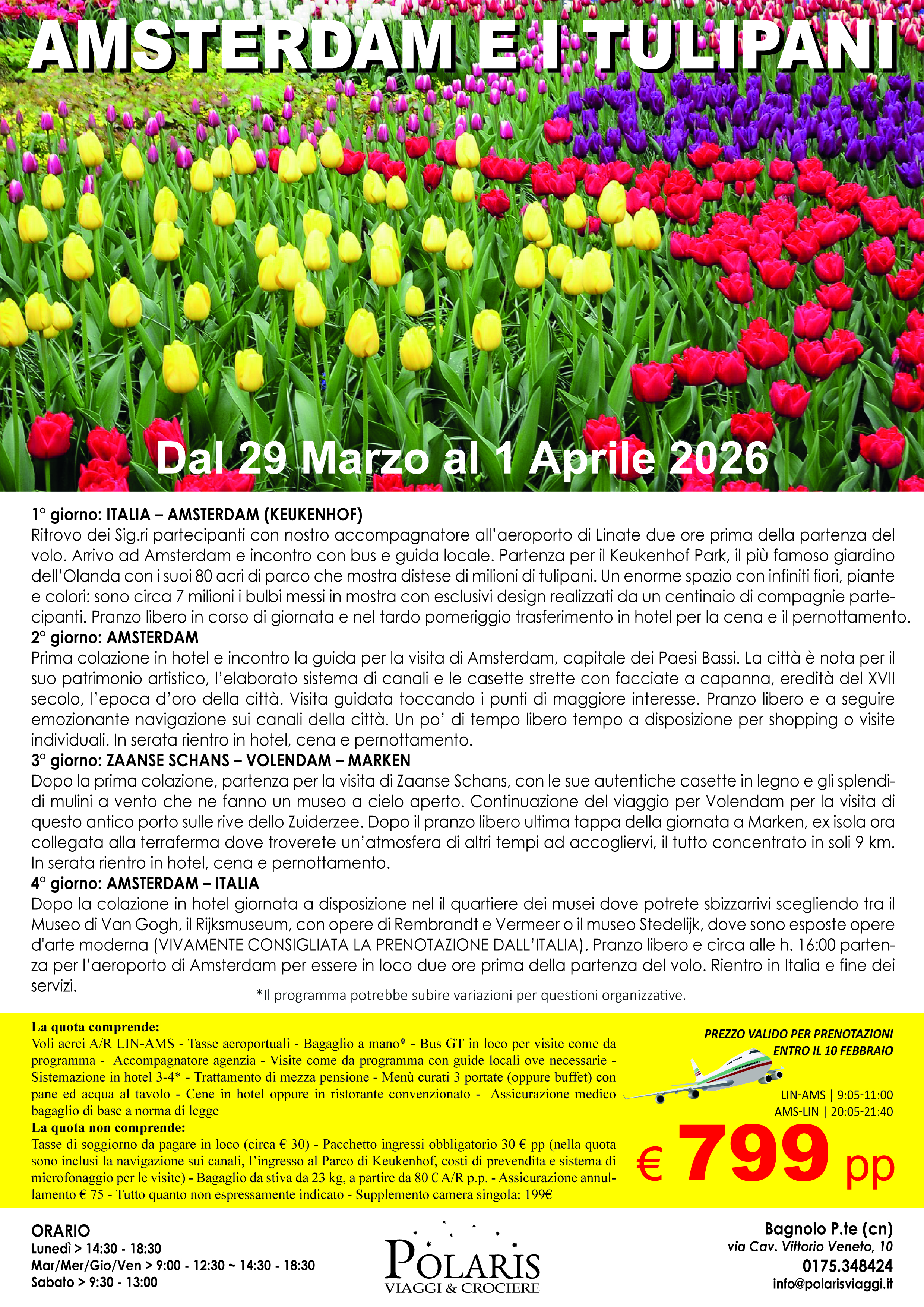 1° giorno: ITALIA – AMSTERDAM (KEUKENHOF)