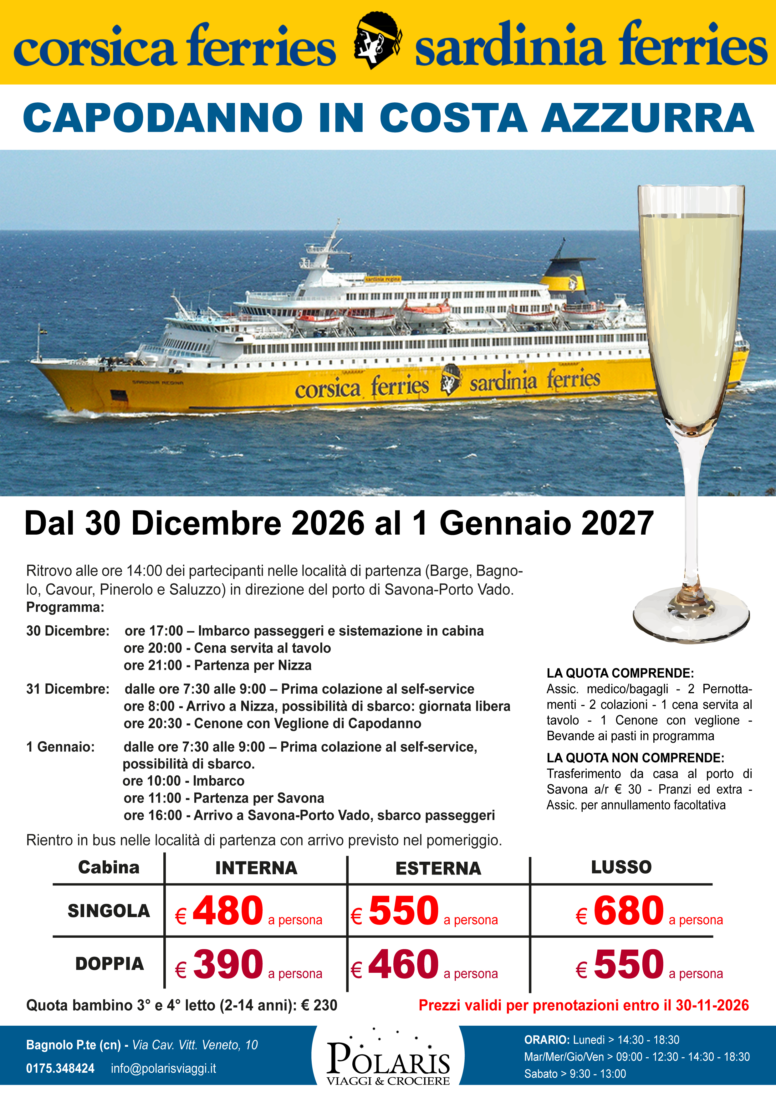 30 Dicembre: ore 17:00 – Imbarco passeggeri e sistemazione in cabina