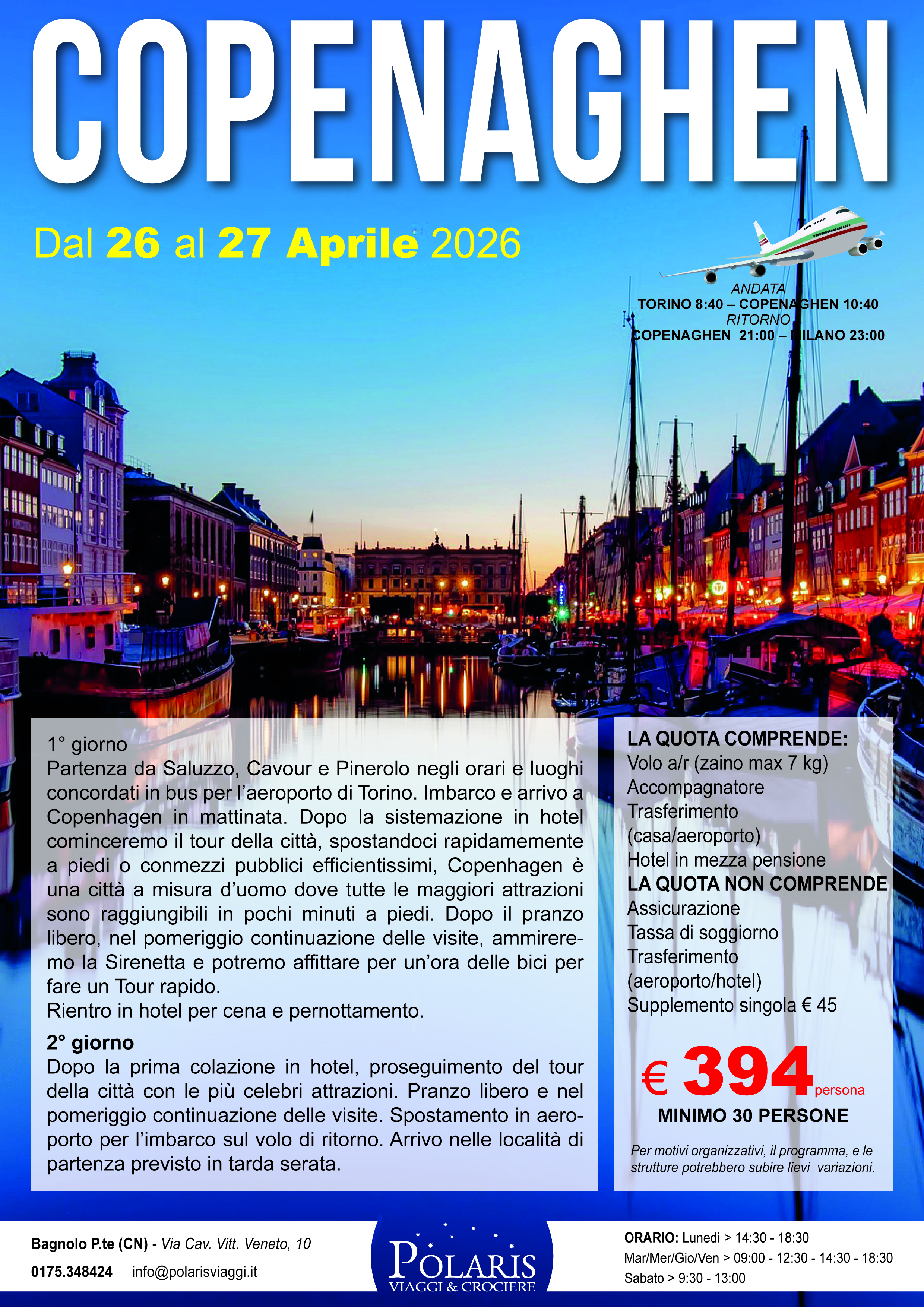 Partenza da Saluzzo, Cavour e Pinerolo negli orari e luoghi