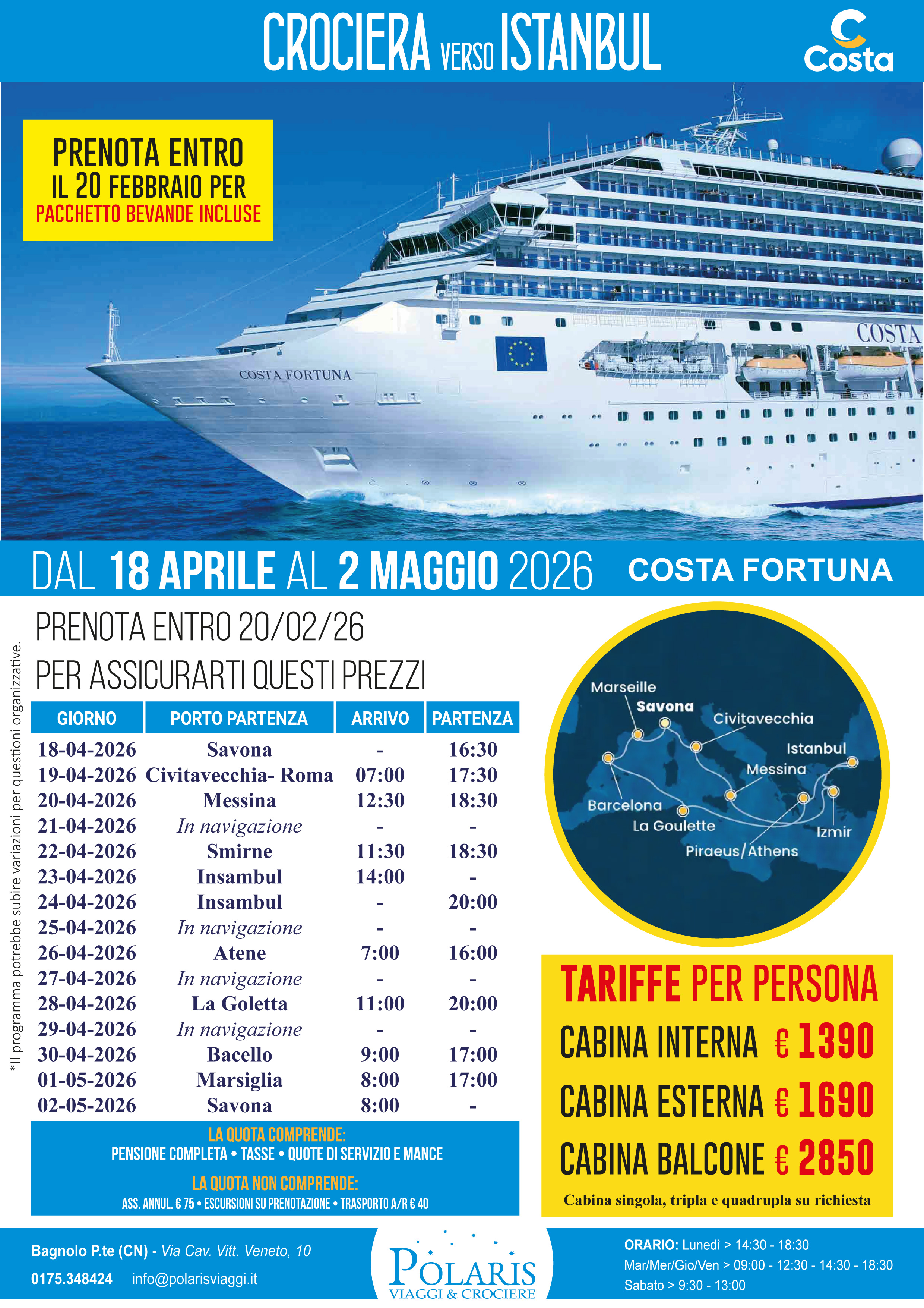 Pensione completa • Tasse • quote di servizio e Mance • prenota entro il 20 febbraio per avere le bevande incluse!