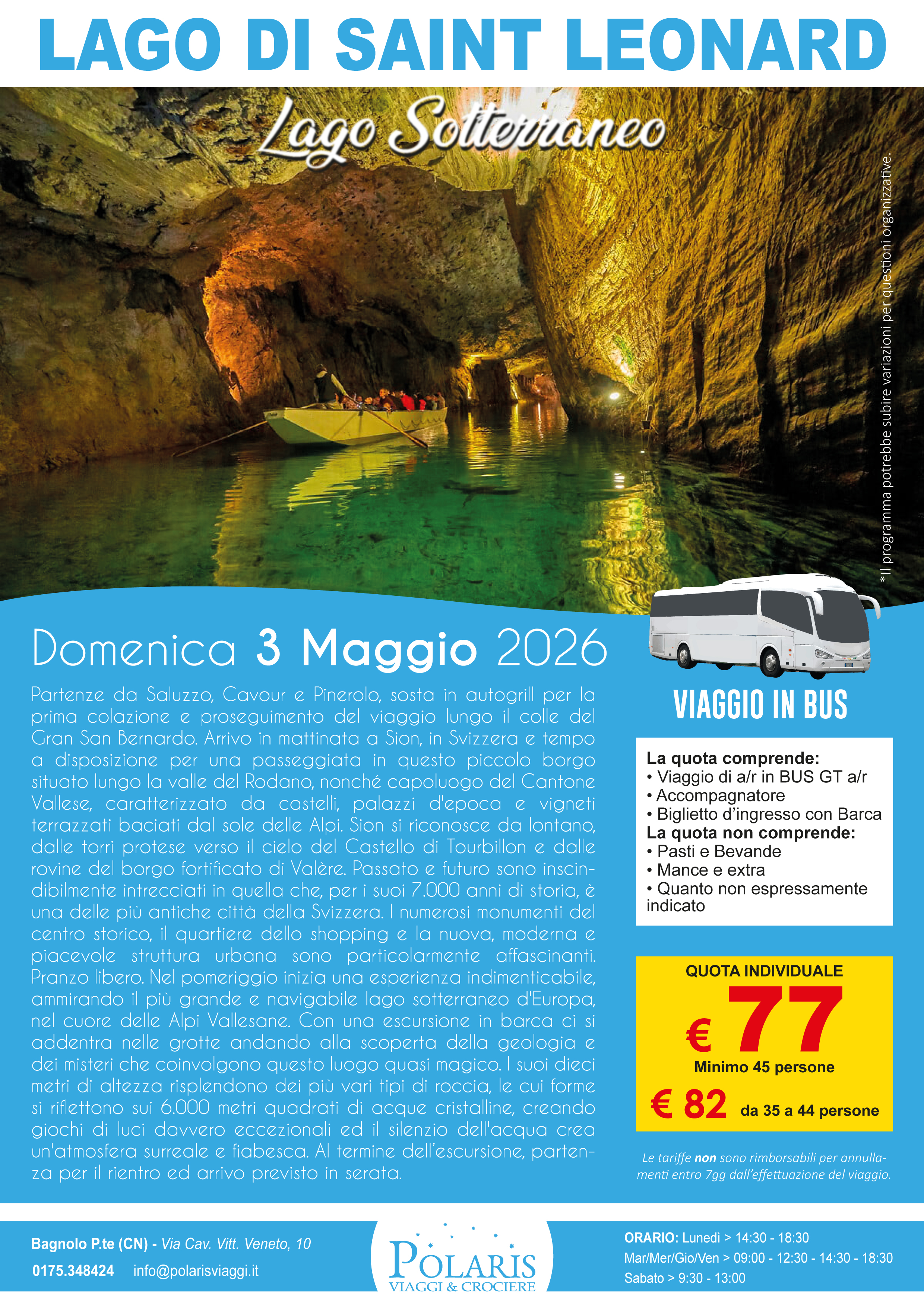 La quota comprende posto riservato nelle prime due file del bus. Il prezzo del biglietto è valido a titolo di acconto. Il saldo del viaggio può essere effettuato direttamente in agenzia o tramite Bonifico (IBAN: IT95P0200845950000100965234 - destinatario: PIANETA POLARIS DI BRUNO ALDO - causale: NOME E COGNOME + VIAGGIO + DATA VIAGGIO).