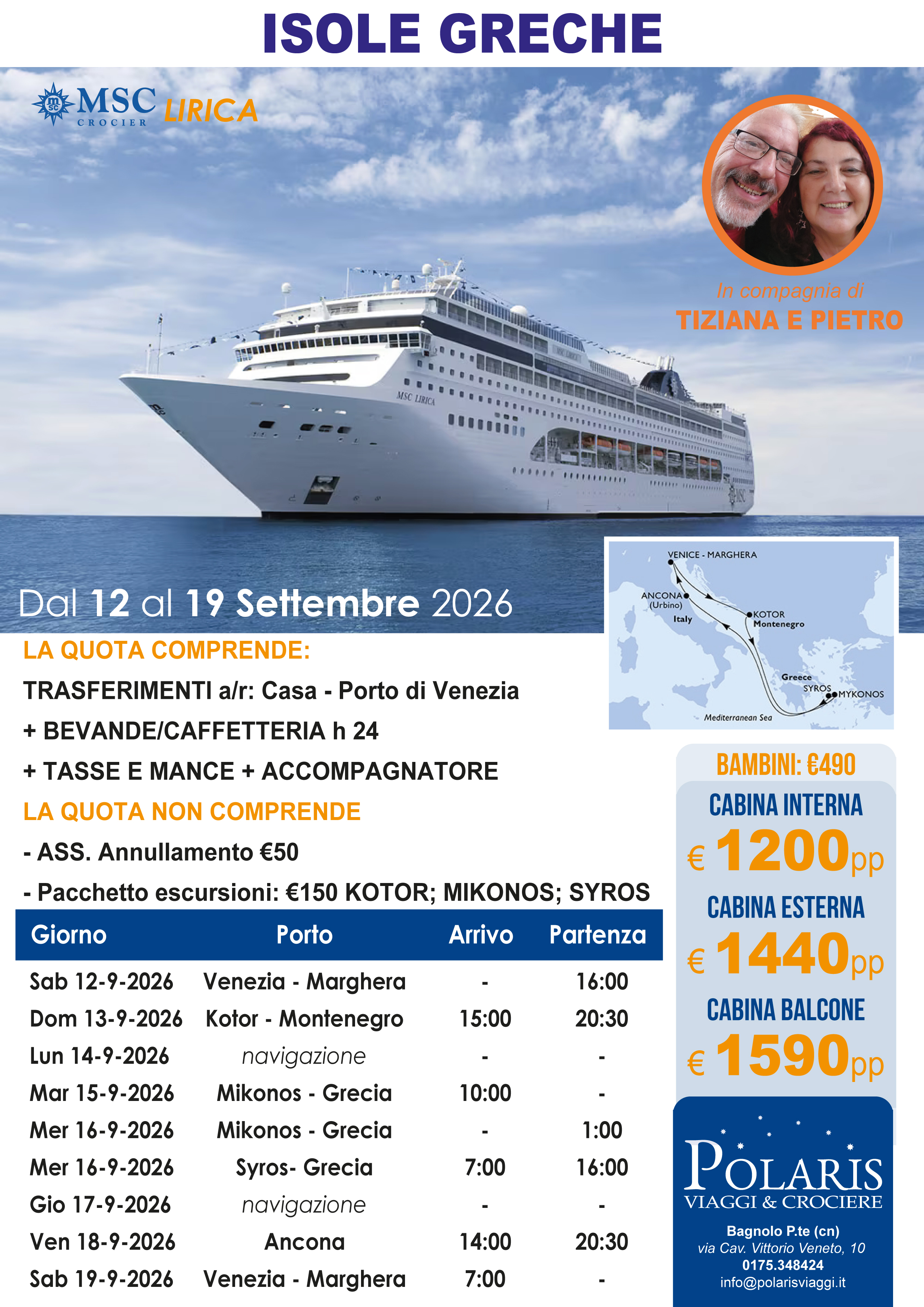 La quota comprende posto riservato nelle prime due file del bus. Il prezzo del biglietto è valido a titolo di acconto. Il saldo del viaggio può essere effettuato direttamente in agenzia o tramite Bonifico (IBAN: IT95P0200845950000100965234 - destinatario: PIANETA POLARIS DI BRUNO ALDO - causale: NOME E COGNOME + VIAGGIO + DATA VIAGGIO).