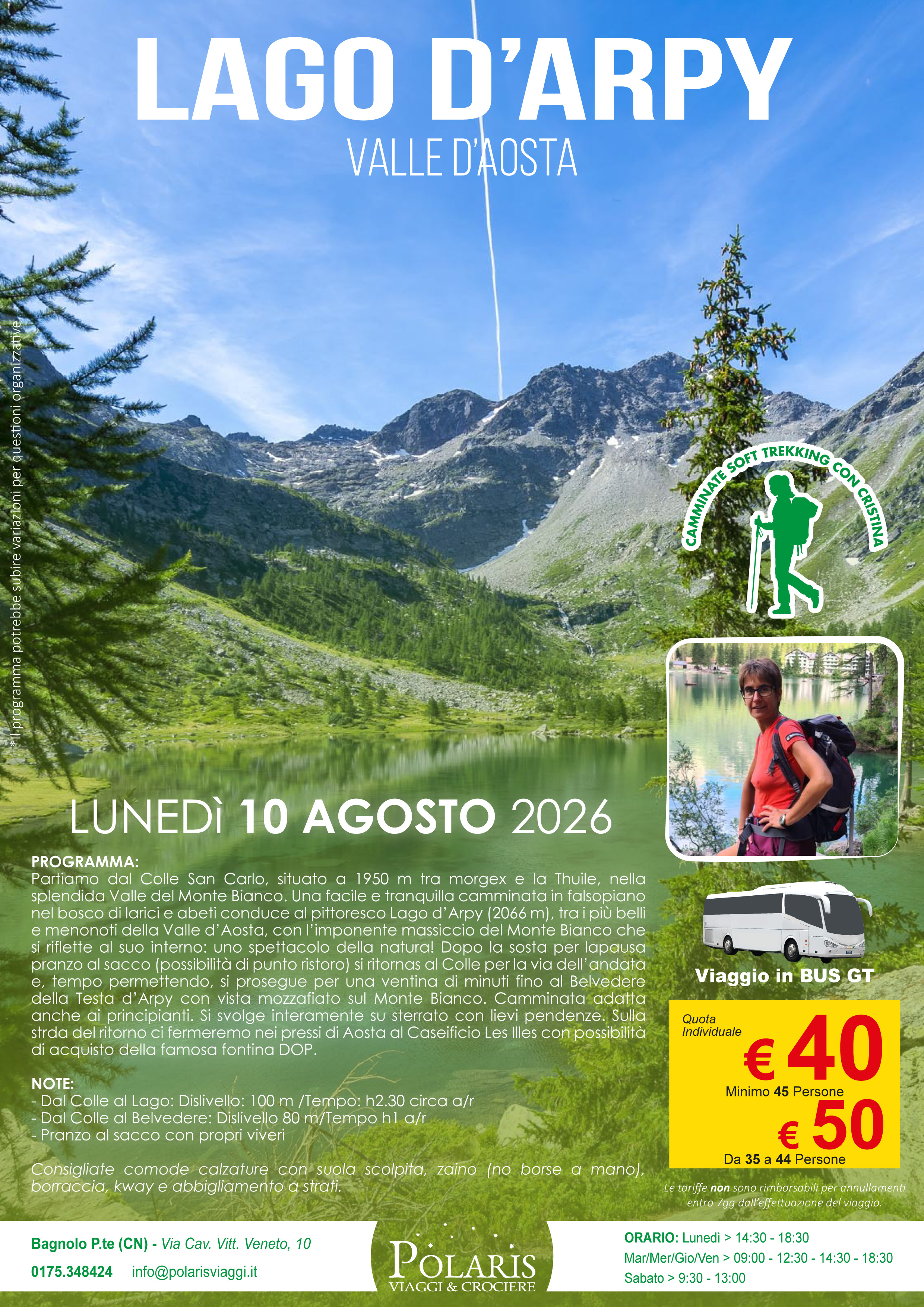 La quota comprende posto riservato nelle prime due file del bus. Il prezzo del biglietto è valido a titolo di acconto. Il saldo del viaggio può essere effettuato direttamente in agenzia o tramite Bonifico (IBAN: IT95P0200845950000100965234 - destinatario: PIANETA POLARIS DI BRUNO ALDO - causale: NOME E COGNOME + VIAGGIO + DATA VIAGGIO).