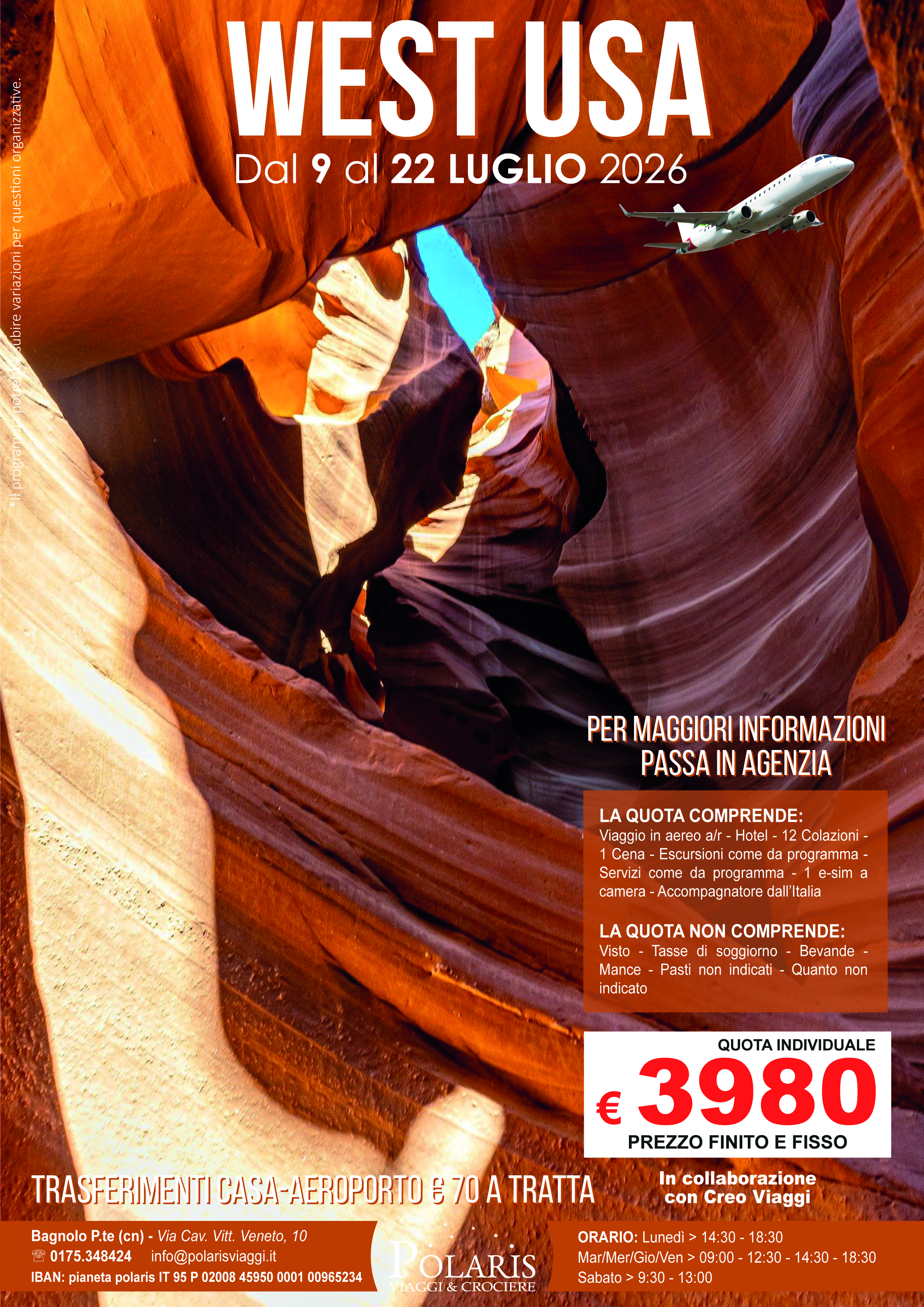 Il prezzo del biglietto è valido a titolo di acconto. Il saldo del viaggio può essere effettuato direttamente in agenzia o tramite Bonifico (IBAN: IT95P0200845950000100965234 - destinatario: PIANETA POLARIS DI BRUNO ALDO - causale: NOME E COGNOME + VIAGGIO + DATA VIAGGIO).